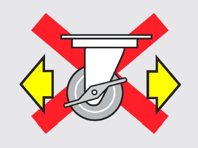 For rigid casters, do not apply excessive force in directions that differ from the wheel rotation direction. |